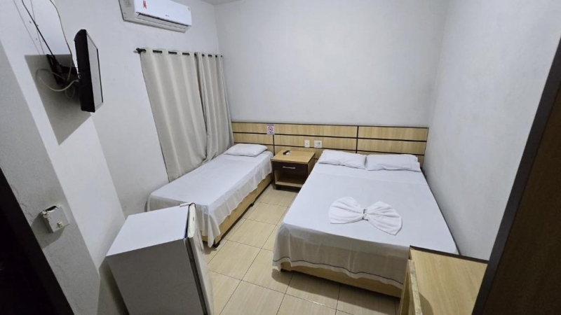 Este quarto duplo dispõe de ar-condicionado e banheiro privativo com chuveiro. A acomodação tem 3 camas.